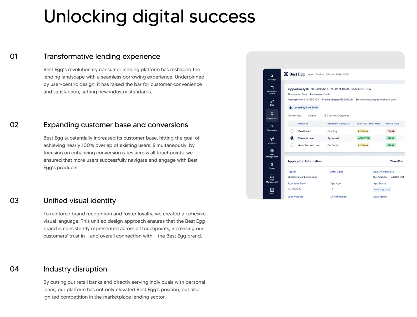 Best Egg creates tools, products and resources designed to help empower users to take concrete steps toward their financial goals. I lead and inspire our 5-member design and research team, collaborating closely with cross-functional stakeholders, to deliver impactful product initiatives.